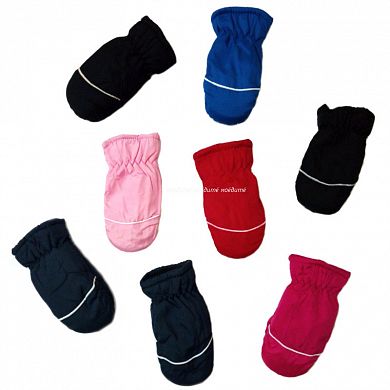 Варежки сверху из непромокаемой плащёвки, подкладка из флиса. Сверху для фиксации стянуты резинкой. Варежки имеют вязаную манжету. Также с этим товаром покупают Варежки двойные для малюток на махре