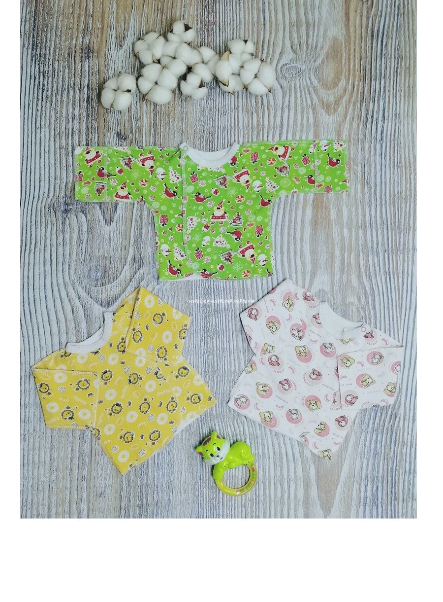 Распашонка с длинным рукавом, с запАхом, с кнопочкой. Рукава со вшитыми царапками. Расцветки в каждой партии и упаковке могут отличаться.